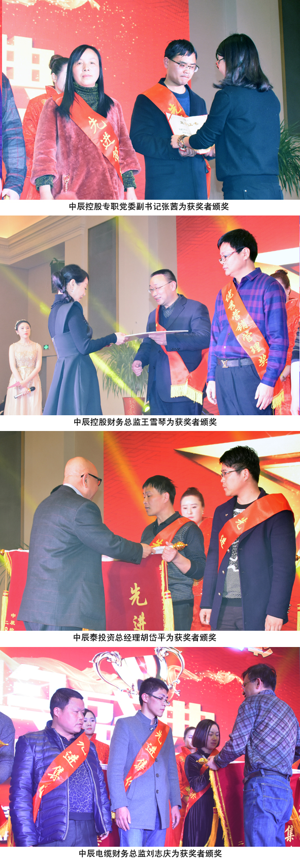 2月6日下午,中辰控股2016年度總結表彰頒獎盛典在宜興氿洲開(kāi)元名都大酒店隆重召開(kāi),大會(huì )全面總結了過(guò)去一年中公司各方面的工作成績(jì)和經(jīng)驗,理性分析當前面臨的形勢并部署2017年工作,同時(shí)大力表彰了2016年度各個(gè)條線(xiàn)上的先進(jìn)集體和先進(jìn)個(gè)人。中辰電纜股份有限公司、常州市拓源電纜成套有限公司及山東聚辰電纜有限公司全體獲獎先進(jìn)個(gè)人、先進(jìn)集體及中高層管理人員、營(yíng)銷(xiāo)經(jīng)理參加了本次總結表彰頒獎盛典,總經(jīng)理姜一鑫主持會(huì )議,董事長(cháng)杜南平作2016年度總結報告并部署2017年度工作安排與要求,副總經(jīng)理周曉勤宣讀了表彰決定,中辰控股董事、上海中辰泰投資有限公司董事長(cháng)劉過(guò)成應邀參加了頒獎盛典。
