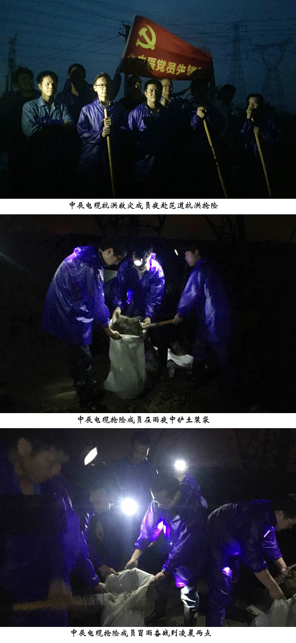 在此次抗洪搶險過(guò)程中,中辰電纜全體參加抗洪搶險的員工,以高度的責任感,頑強的拼搏精神和連續作戰的毅力,用實(shí)際行動(dòng)彰顯了中辰人強烈的社會(huì )責任感和使命感,展示了“一方有難、八方支援”的傳統美德,譜寫(xiě)了一曲斗志昂揚、積極進(jìn)取的抗洪搶險頌歌。