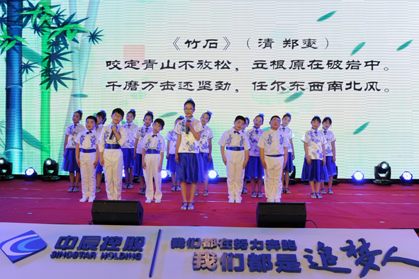 頒獎儀式在《同心擊鼓 同行同向》的開(kāi)場(chǎng)視頻中拉開(kāi)了帷幕。文藝演出與頒獎環(huán)節穿插進(jìn)行,節目精彩紛呈,充分展現了廣大中辰員工積極進(jìn)取的精神風(fēng)貌、多才多藝的舞臺魅力。五只萌趣十足的小豬一路分發(fā)著(zhù)紅包,憨態(tài)可掬地為大家帶來(lái)了《金豬送?!?;拉丁舞《青春永不謝幕》動(dòng)感十足;歌伴舞《花田錯》優(yōu)美動(dòng)人;小品《最強天團》、《人才難得》詼諧生趣,幾位演員一招一式都透著(zhù)幽默,樂(lè )翻全場(chǎng);舞蹈《80、90》、《pick me up》等活力四射;大合唱《黨員宣誓》激昂奮發(fā)、詩(shī)朗誦《梅蘭竹菊》動(dòng)情感人;最后在一首大氣磅礴得《不忘初心》中,全體參與表演的員工共同登臺,為頒獎盛典畫(huà)上了一個(gè)圓滿(mǎn)的句號。
