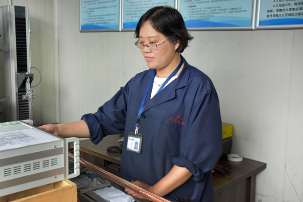 一名普通的員工,憑著(zhù)對電纜事業(yè)和本職工作的熱愛(ài),八年來(lái)專(zhuān)注于做好電纜檢測工作;忠誠企業(yè),感恩社會(huì ),執著(zhù)堅守,充滿(mǎn)正能量的她在激勵自己的同時(shí),也感染著(zhù)他人。她,就是檢測中心測試員——丁彩萍。