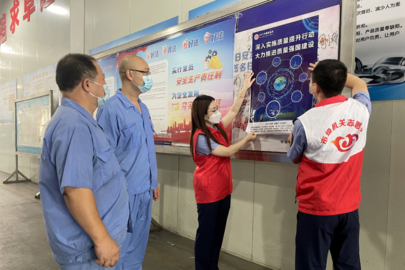 營(yíng)造濃厚的質(zhì)量氛圍是“質(zhì)量月”活動(dòng)取得實(shí)效的基礎條件。公司利用所有的電子屏幕滾動(dòng)播放“質(zhì)量月”活動(dòng)方案,廣泛宣傳活動(dòng)開(kāi)展的相關(guān)要求。借助公司網(wǎng)站、報紙、微信平臺、櫥窗等方式對公司質(zhì)量月活動(dòng)的開(kāi)展情況進(jìn)行大力宣傳和報道,尤其是對公司質(zhì)量月活動(dòng)中涌現出的先進(jìn)事跡、先進(jìn)人物、先進(jìn)做法和經(jīng)驗進(jìn)行推廣和報道,弘揚先進(jìn)精神,營(yíng)造人人關(guān)注質(zhì)量的濃厚氛圍。
