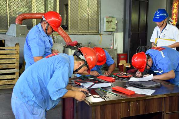 蔣永全細致的測量水平和精湛的銼削技藝讓金屬作品尺寸完美無(wú)瑕、外觀(guān)圓潤光澤;劉亞平焊接技術(shù)一氣呵成,讓兩塊金屬“無(wú)縫”對接,無(wú)氣孔、無(wú)夾渣、無(wú)焊瘤……他們都是中辰機修的中堅力量。