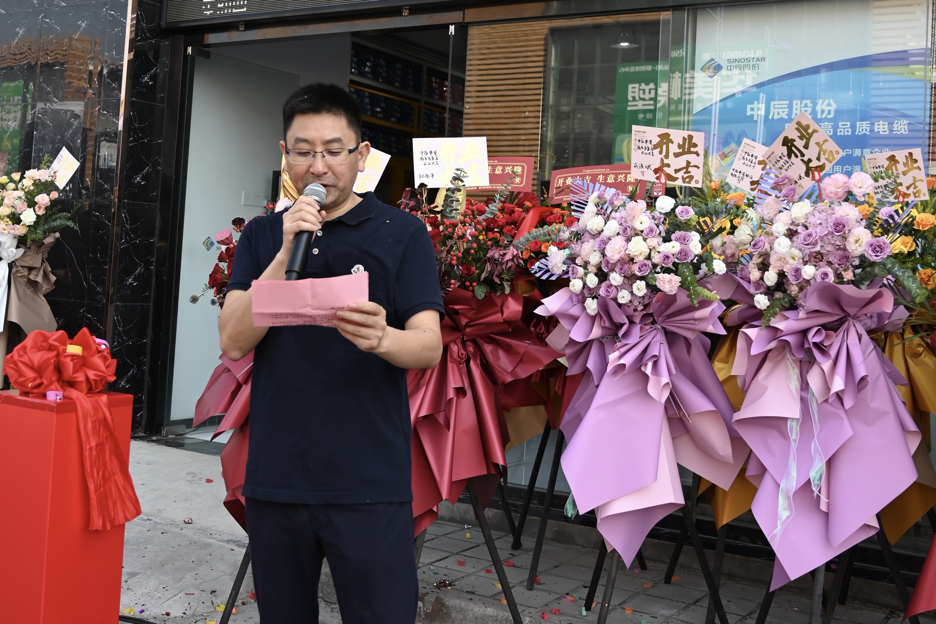 開(kāi)業(yè)盛典上,姜一鑫首先代表中辰股份,對到場(chǎng)的嘉賓朋友表示熱烈的歡迎,對公司合作伙伴的關(guān)心與厚愛(ài)表示衷心的感謝!姜總提出專(zhuān)賣(mài)店營(yíng)銷(xiāo)模式是中辰電纜重要的品牌營(yíng)銷(xiāo)戰略,是全面進(jìn)入市場(chǎng)關(guān)鍵環(huán)節,更是公司品牌推廣的重要媒介。未來(lái),中辰電纜也將落地全國專(zhuān)賣(mài)店,打造多元營(yíng)銷(xiāo)矩陣、建立品牌營(yíng)銷(xiāo)體系。希望南京專(zhuān)賣(mài)店能依托省會(huì )發(fā)展優(yōu)勢,中辰品牌優(yōu)勢以及市場(chǎng)資源優(yōu)勢,多渠道開(kāi)拓市場(chǎng),全心全意為客戶(hù)提供一流的品質(zhì)、專(zhuān)業(yè)的技術(shù)、滿(mǎn)分的服務(wù)。在南京市打響中辰品牌,創(chuàng )造驕人業(yè)績(jì),為中辰實(shí)現更高質(zhì)量發(fā)展作出新的更大貢獻。