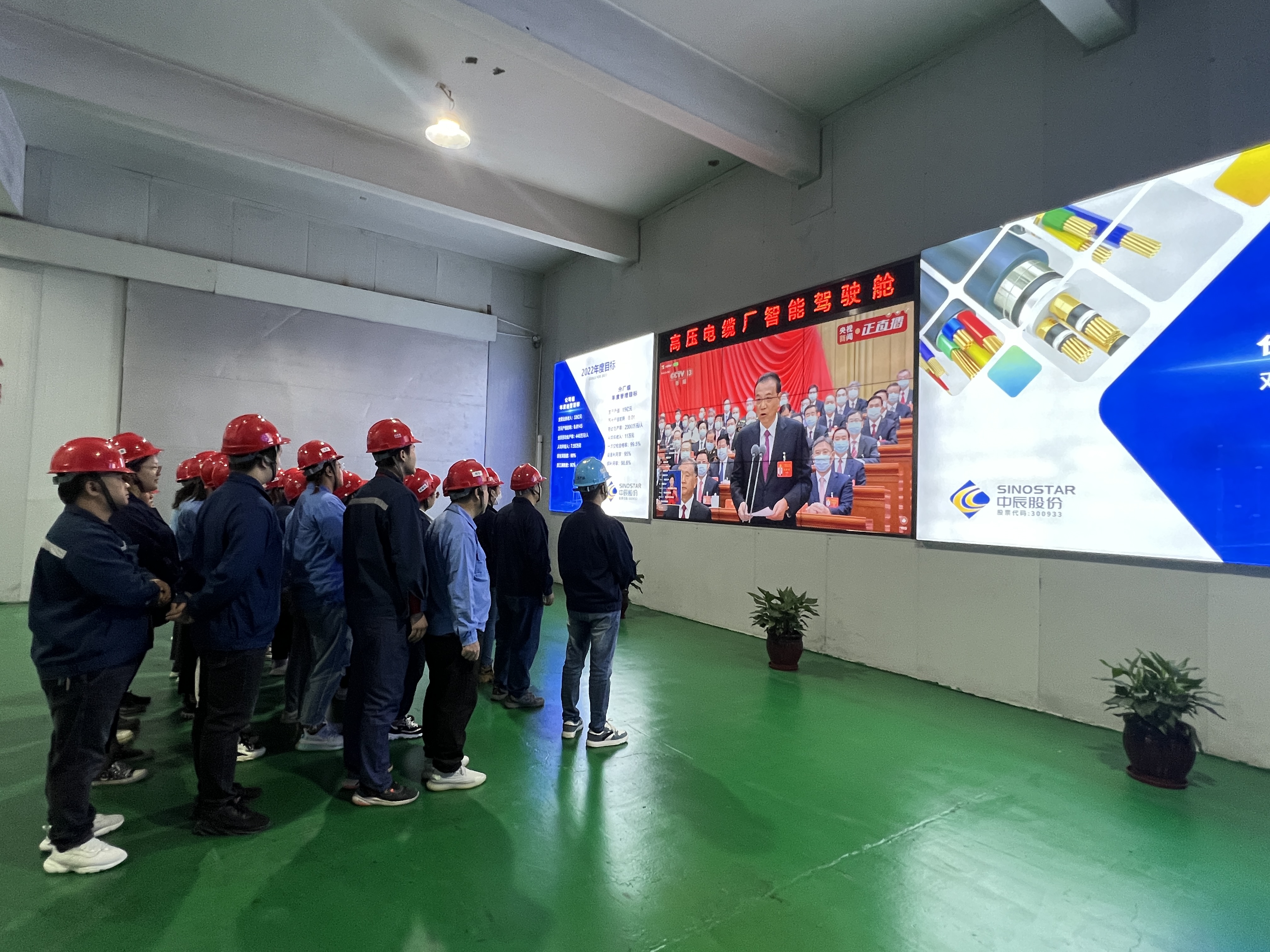 10月16日上午10時(shí),中國共產(chǎn)黨第二十次全國代表大會(huì )在北京人民大會(huì )堂開(kāi)幕。在中辰電纜車(chē)間、辦公室,正在生產(chǎn)工作的黨員與職工們匯聚在各個(gè)直播觀(guān)看點(diǎn)前,駐足觀(guān)看大屏幕上正在播放著(zhù)的黨的二十大開(kāi)幕盛況,收聽(tīng)收看習近平總書(shū)記的報告。