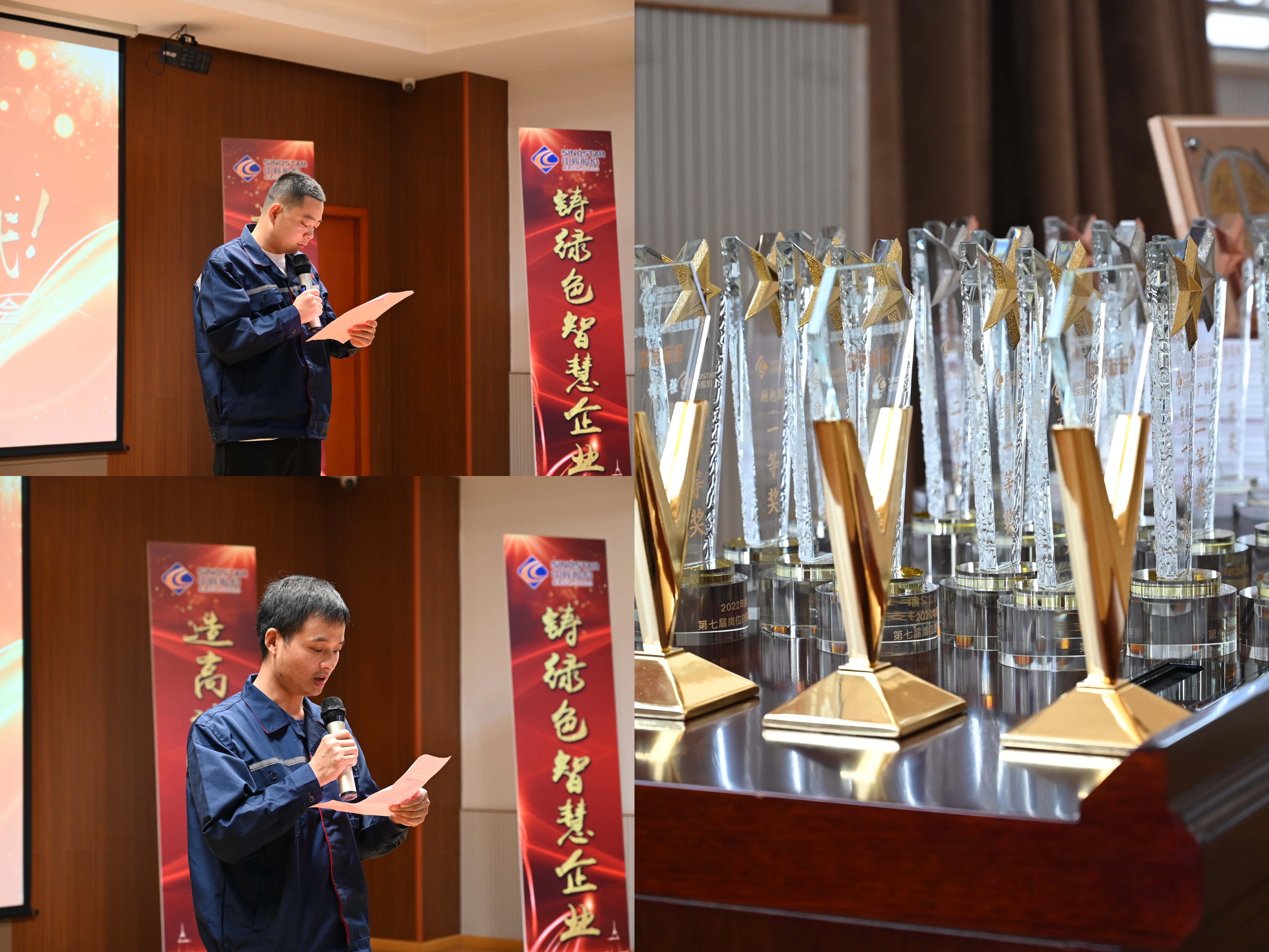 會(huì )上,總經(jīng)理姜一鑫宣讀了《關(guān)于表彰中辰股份質(zhì)量月活動(dòng)暨崗位技能競賽優(yōu)秀集體和先進(jìn)個(gè)人的決定》:授予潘晶等4名員工“中辰標桿”稱(chēng)號,對左銀甫、徐建群等獲獎員工給予表彰獎勵;董事長(cháng)杜南平為獲獎人員頒發(fā)獎杯與紀念品。